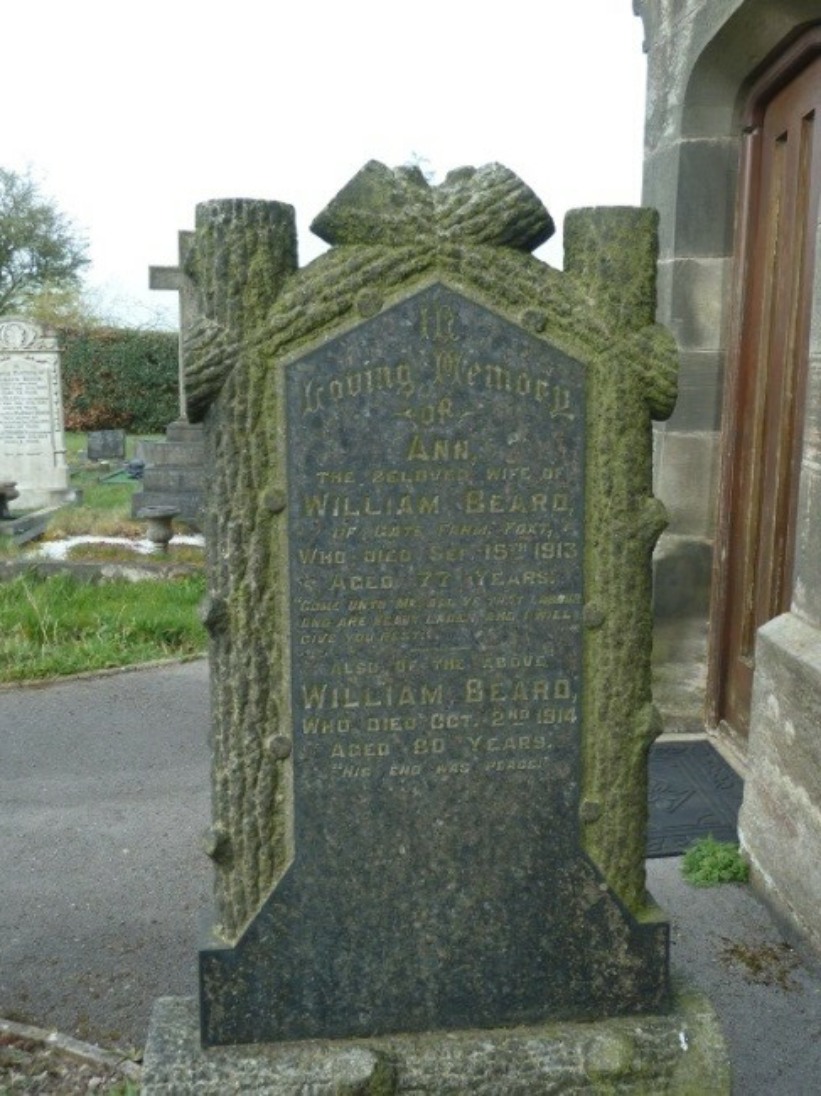 IN LOVING MEMORY OFANN THE BELOVED WIFE OFWILLIAM BEARDOF GATE FARM FOXTWHO DIED SEP 15 1913 AGED 77 YEARS