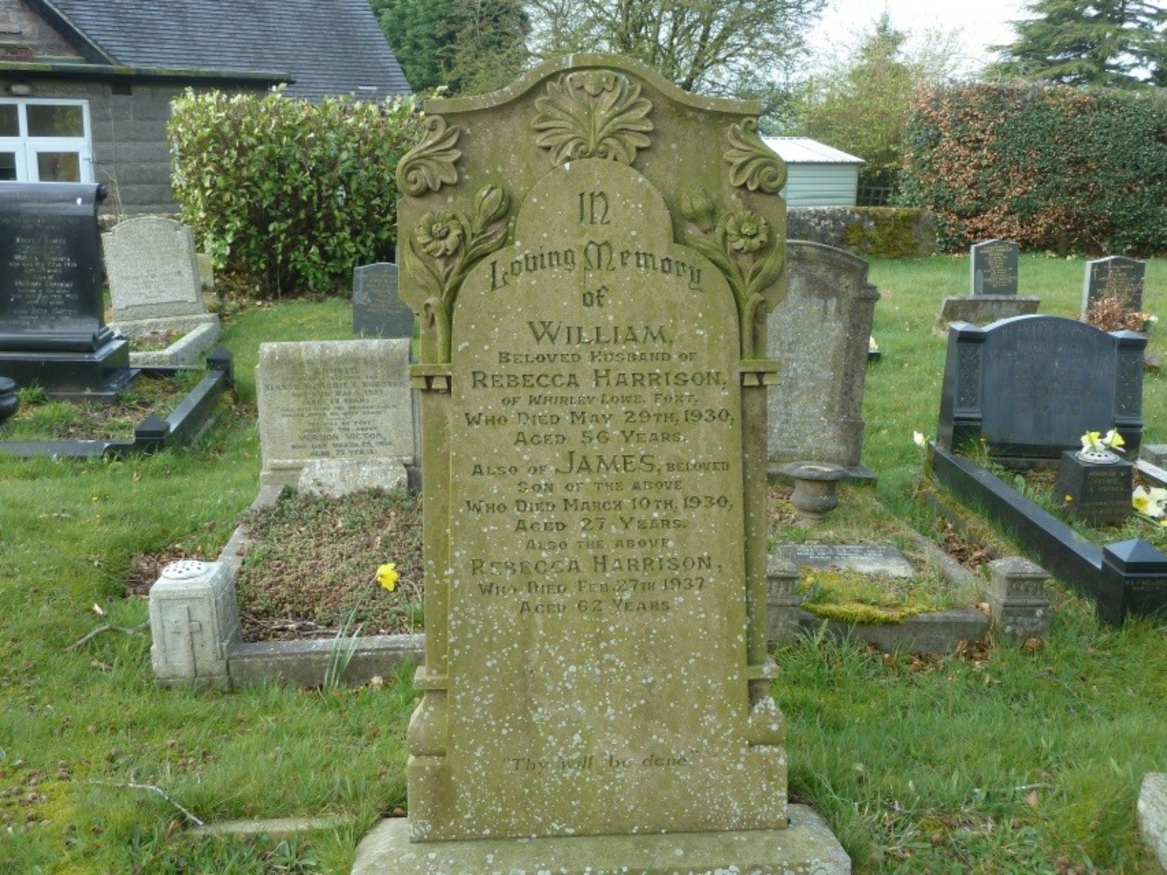 In Loving Memory of William Beloved Husband of Rebecca Harrison OF WHIRLEY LOWE FOXT WHO DIED MAY 29 1930 AGED 56 YEARS ALSO OF JAMES BELOVED SON OF THE ABOVE WHO DIED MARCH 10 1930 AGED 27 YEARS ALSO THE ABOVE REBECCA HARRISON WHO DIED FEB 27 1937 AGED 62 YEARS THY WILL BE DONE |