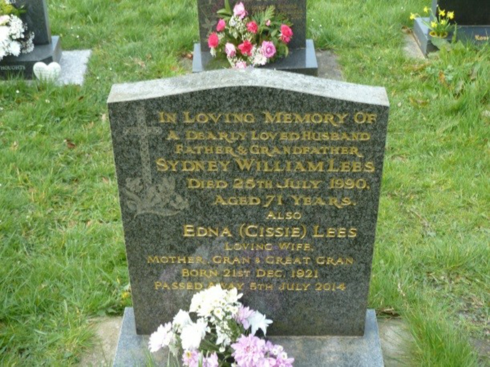 IN LOVING MEMORY OF A DEARLY LOVED HUSBAND FATHER AND GRANDFATHER SYDNEY WILLIAM LEES DIED JULY 1990 AGED 71 YEARS ALSO EDNA (CISSIE) LEES Beloved Wife MOTHER GRAN & GREAT GRAN BORN 21st. Dec 1921 Passed away 5th JULY 2014 [Of Woodcutters, Foxt] |