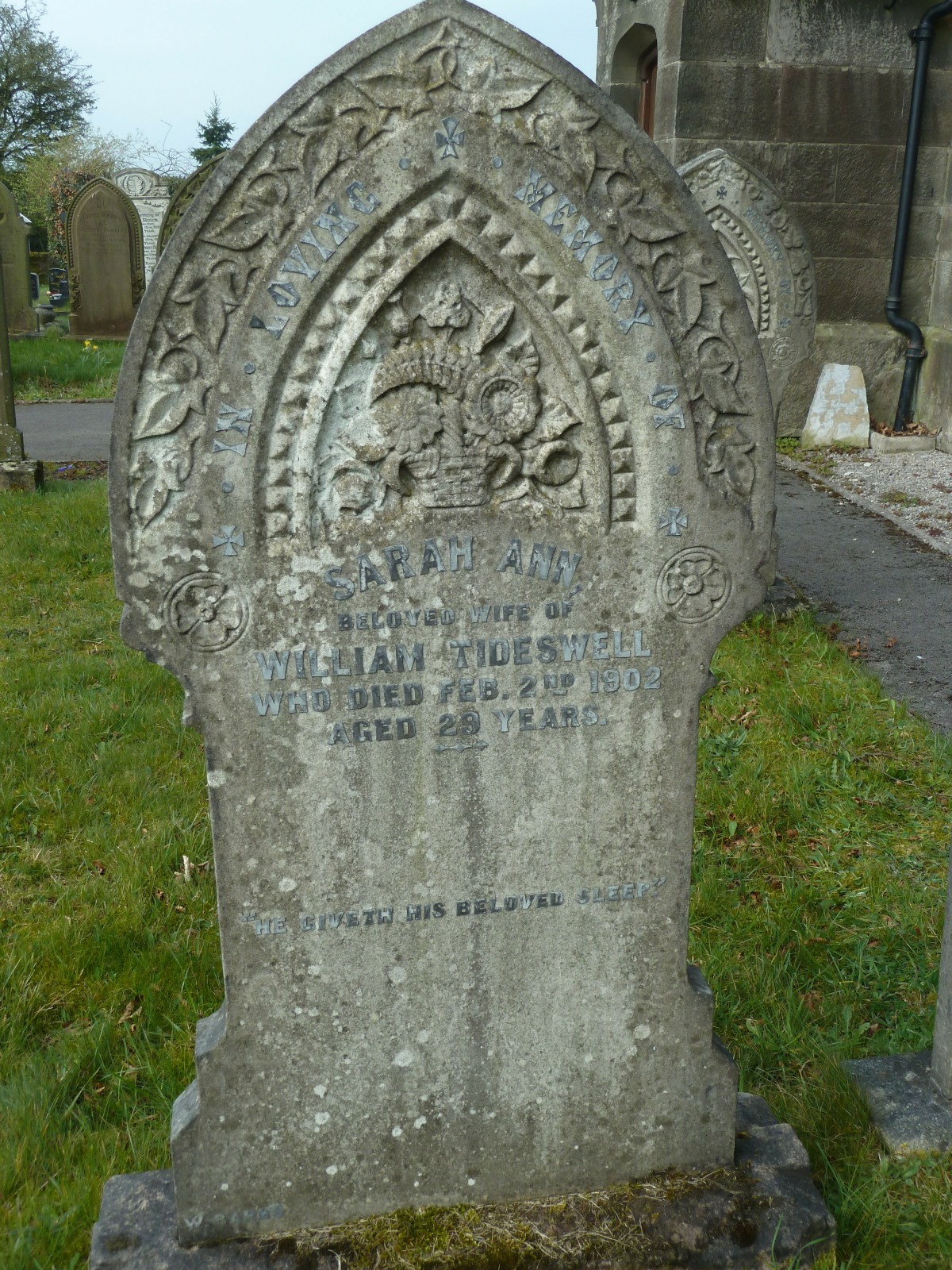 IN LOVING MEMORY OFSARAH ANNBELOVED WIFE OFWILLIAM TIDESWELLWHO DIED FEB 2 1902