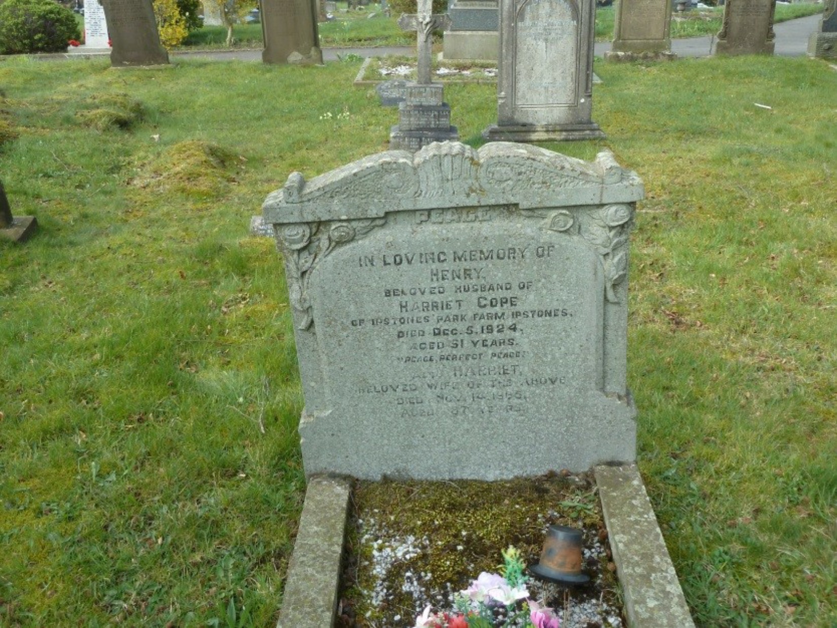 OF IPSTONES PARK FARM IPSTONESDIED DEC 5 1924 AGED 51 YEARS"PEACE PERFECT PEACE”
