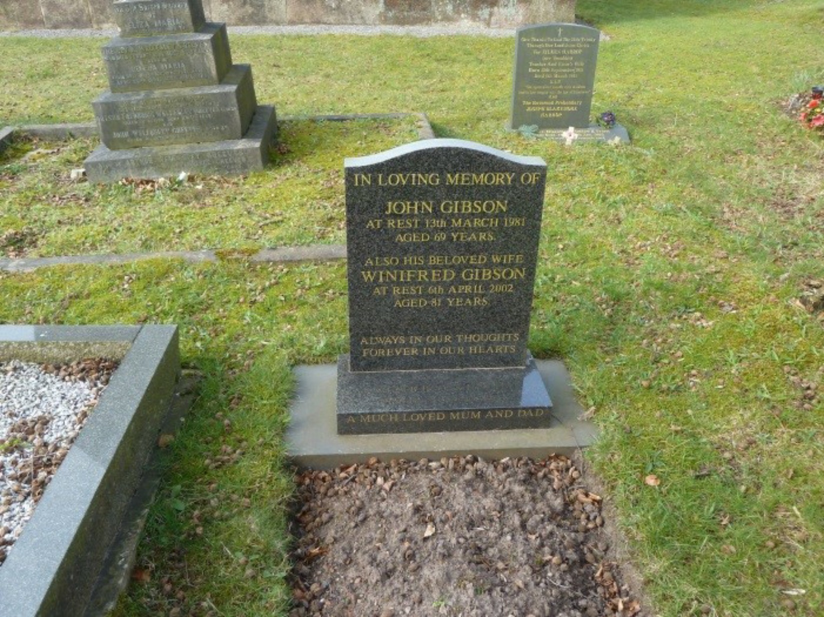 IN LOVING MEMORY OF JOHN GIBSON AT REST 13 MARCH 1981 AGED 69 YEARS ALSO HIS BELOVED WIFE WINIFRED GIBSON AT REST 6 APRIL 2002 AGED 81 YEARS ALWAYS IN OUR THOUGHTS FOREVER IN OUR HEARTS A MUCH LOVED MUM AND DAD [Of Mount Pleasant, Foxt] |