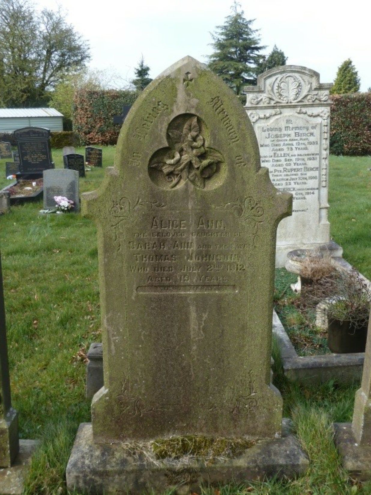 THE BELOVED DAUGHTER OF SARAH ANNAND THE LATE THOMAS JOHNSONWHO DIED JULY 2 1912 AGED 19 YEARS